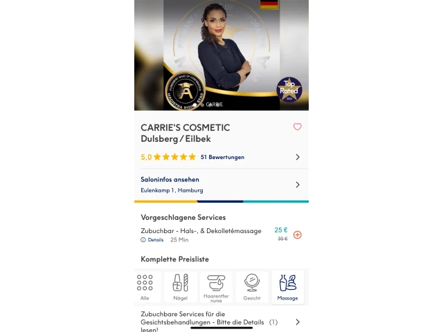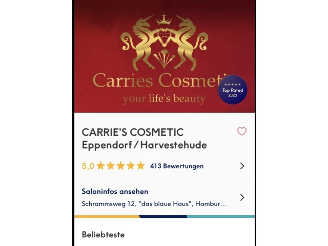 Im Herzen von Hamburg betreibe ich zwei kleine, bescheidene, aber liebevoll eingerichtete Kosmetikstudios in Eppendorf und Dulsberg. Seit 2020 durchgehend top-bewertet und 2024 als "Best Studio" ausgezeichnet.